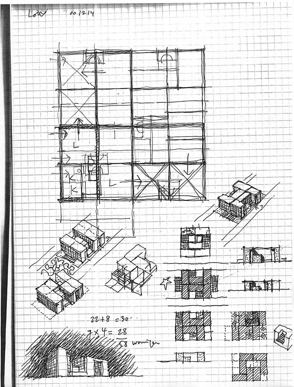 Back to the (sketch) archive... Managed Care 1, planting idea for the courtyard