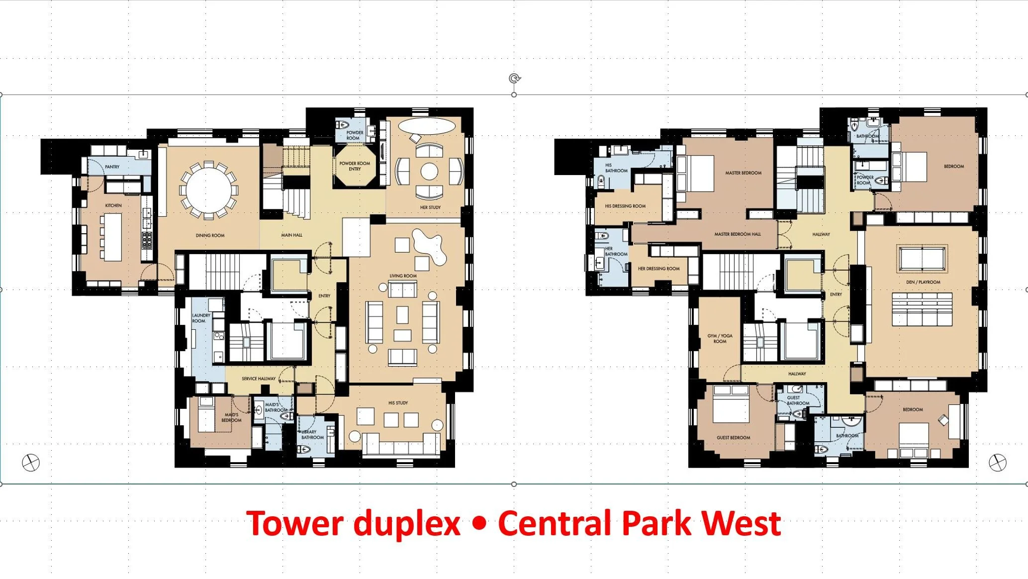 In a new series of posted floorplans, we'll divide them in different categories. We start with duplex apartments. Collecting seven adjacent apartments over the period of 15 years, it is now one on Central Park West..1