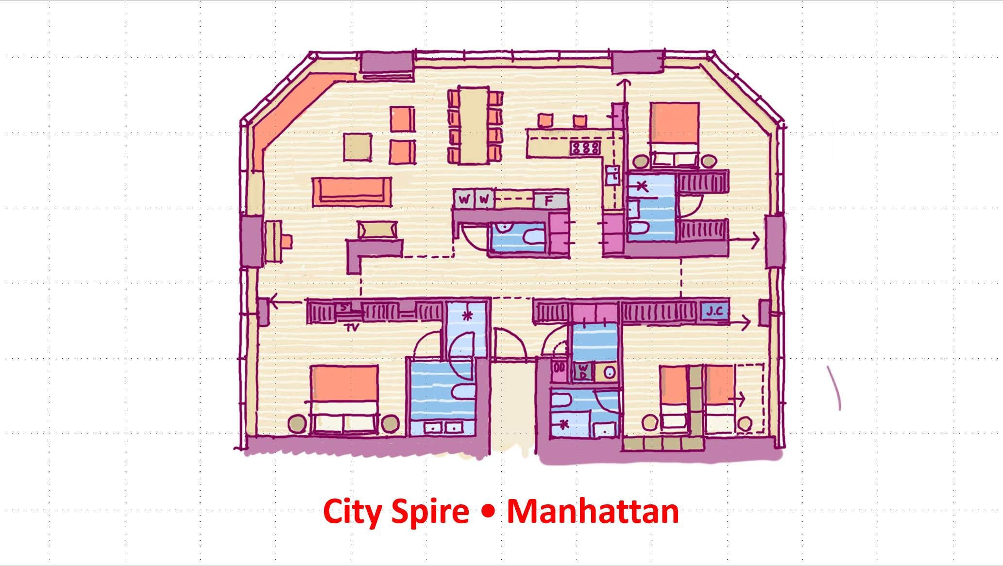 In the series Single Floor plans we did two projects (and possibly three) in the City Spire in Midtown Manhattan. The three exposures are an unbelievable asset...3