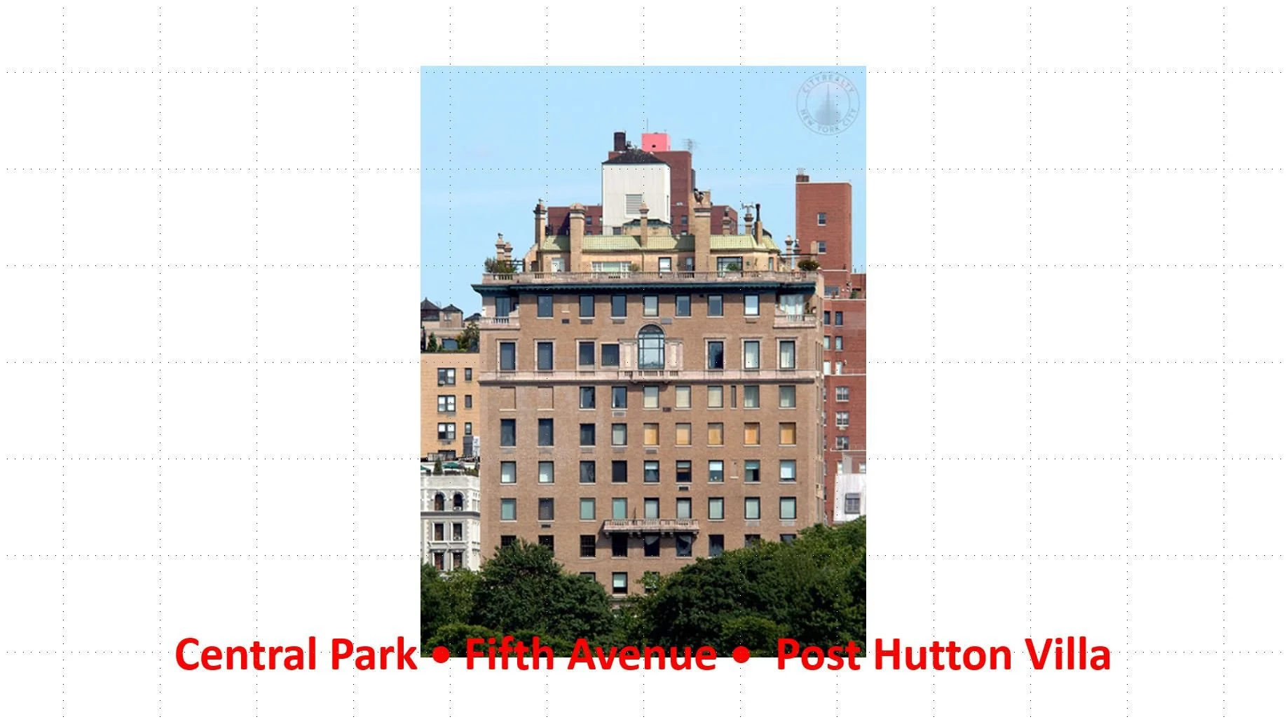 In the series Single Floor plans this is a grand apartment design as a split-off part of the three story Post Hutton villa that was built on the roof of the apartment building on Fifth Avenue... 1