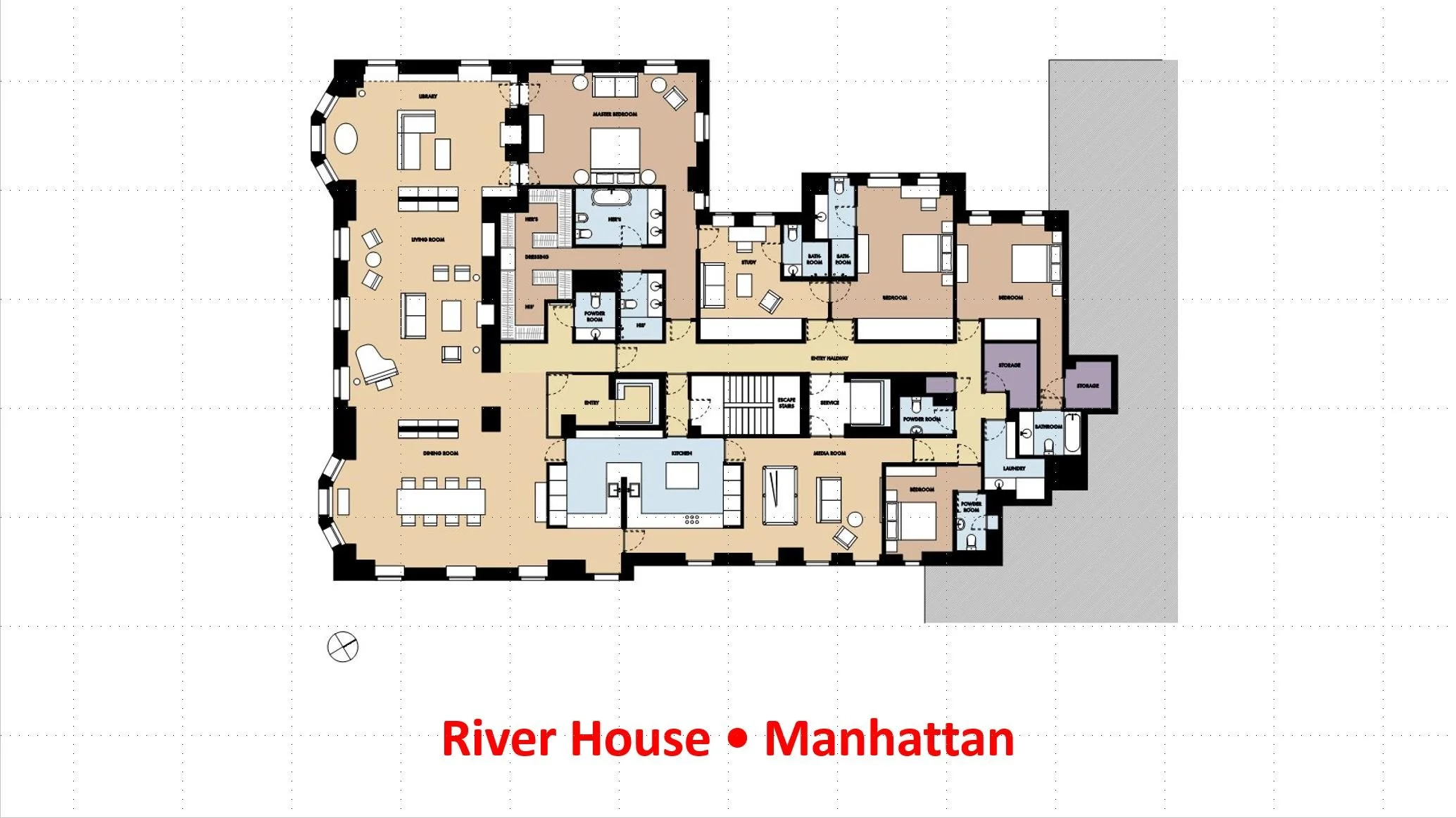 In the series Single Floor plans this is a grand apartment design (only partly built) in one of the most difficult New York CoOps to get into. Kissinger lived the, but Diane Keaton got refused by the board... 2
